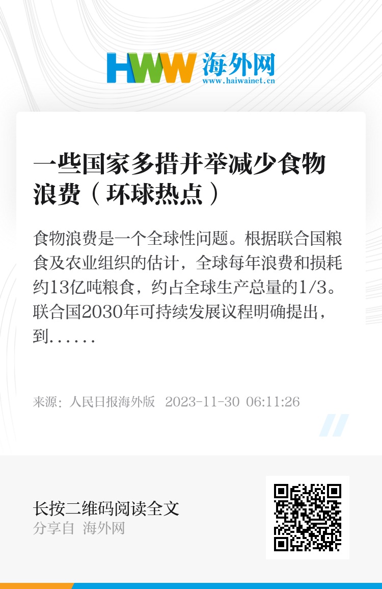 食物浪费是一个全球性问题。根据联合国粮食及农业组织的估计,全球每年浪费和损耗约13亿吨粮食,约占全球生产总量的1/3。联合国2030年可持续发展议程明确提出,到2030年将零售和消费环节的全球人均粮食浪费减半、减少生产和供应环节的粮食损失的目标。为遏制食物浪费,一些国家持续出台政策措施,通过立法、宣传、技术创新等手段,积极倡导节约环保理念,切实减少从“田间”到“餐桌”的食物损耗,推进反餐饮浪费工作,取得一定成效。