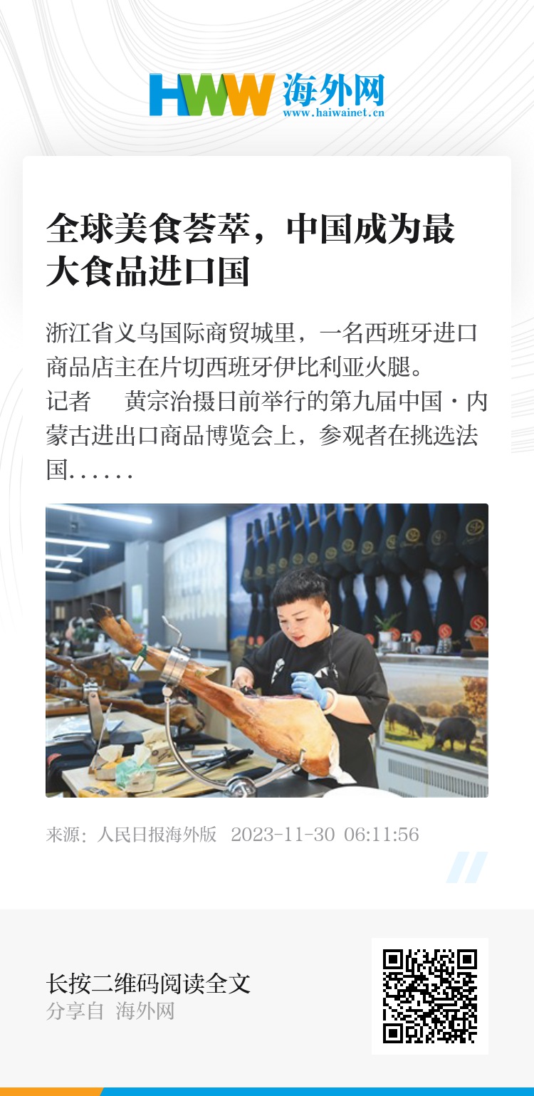 报告认为:“中国进口食品规模进一步扩大,食品贸易伙伴不断增加,不仅满足着中国消费者不断升级的食品需求,也为全球农产品贸易的蓬勃发展注入了动力。”(本报记者 李 婕)