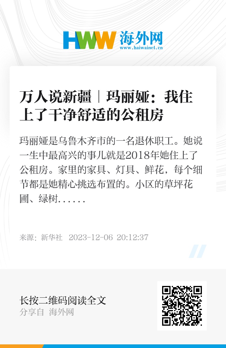 玛丽娅是乌鲁木齐市的一名退休职工。她说一生中最高兴的事儿就是2018年她住上了公租房。家里的家具、灯具、鲜花,每个细节都是她精心挑选布置的。小区的草坪花圃、绿树凉亭整洁美观,出门就有公交车,周边就是菜店和超市,生活方便又舒适。玛丽娅说:“一个月164元的房租,就跟白送的房子一样,我非常喜欢现在的生活,跟以前破旧的老房子比,简直一个天一个地。”