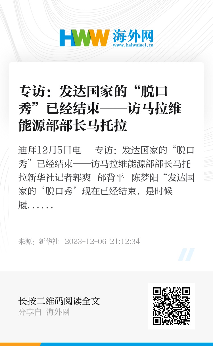 新华社迪拜12月5日电 专访:发达国家的“脱口秀”已经结束——访马拉维能源部部长马托拉