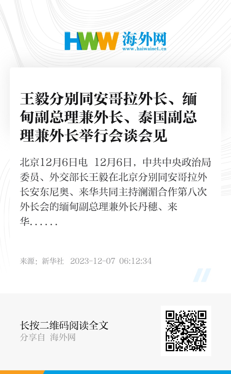 新华社北京12月6日电 12月6日,中共中央政治局委员、外交部长王毅在北京分别同安哥拉外长安东尼奥、来华共同主持澜湄合作第八次外长会的缅甸副总理兼外长丹穗、来华参加澜湄合作第八次外长会的泰国副总理兼外长班比举行会谈、会见。
