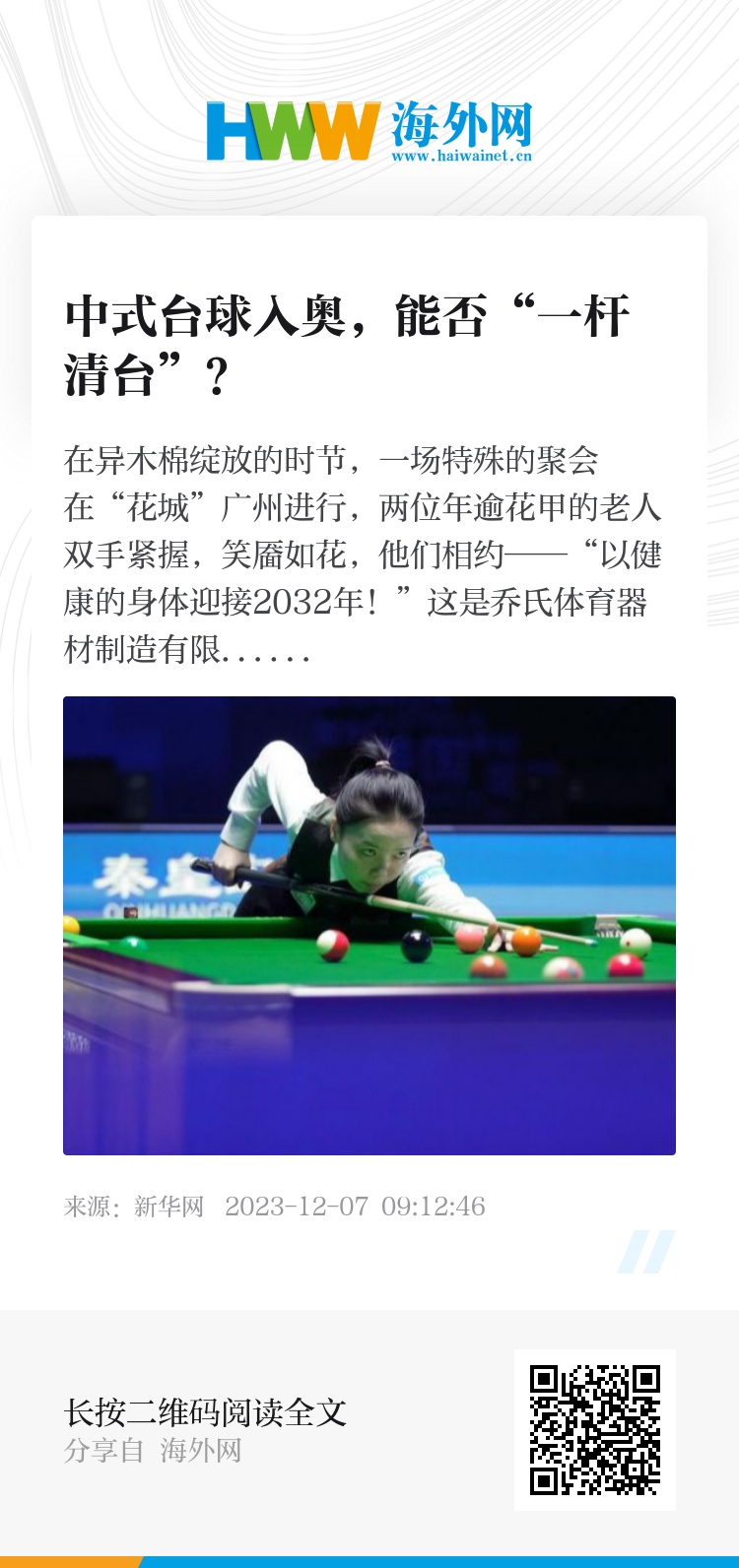“今天我必须承认,此时此刻是我们有史以来最接近入奥梦想的一次。我生来就是一个乐观主义者,永远不会放弃希望。我非常荣幸能成为推动中式台球入奥伟业的一分子。”桑德曼说。(记者王浩明、赵紫羽)