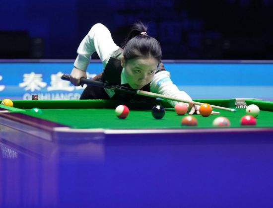 4月3日,唐春晓在第十一届中式台球国际大师赛全球总决赛的胜部决赛中。新华社记者 杨世尧 摄