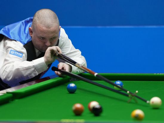 4月2日,英国选手克里斯·梅林在第十一届中式台球国际大师赛全球总决赛第四阶段胜部第三轮的比赛中。新华社记者 杨世尧 摄
