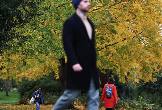 11月12日,人们走在法国巴黎蒙苏里公园内。新华社记者高静摄