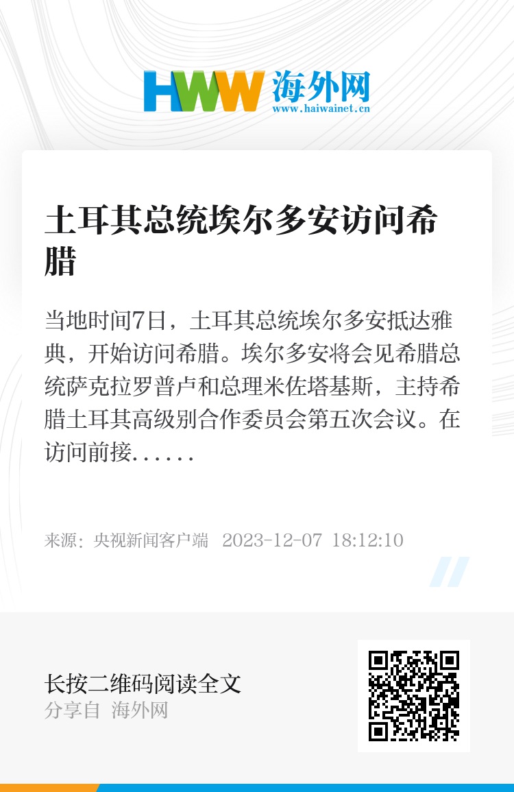 当地时间7日,土耳其总统埃尔多安抵达雅典,开始访问希腊。