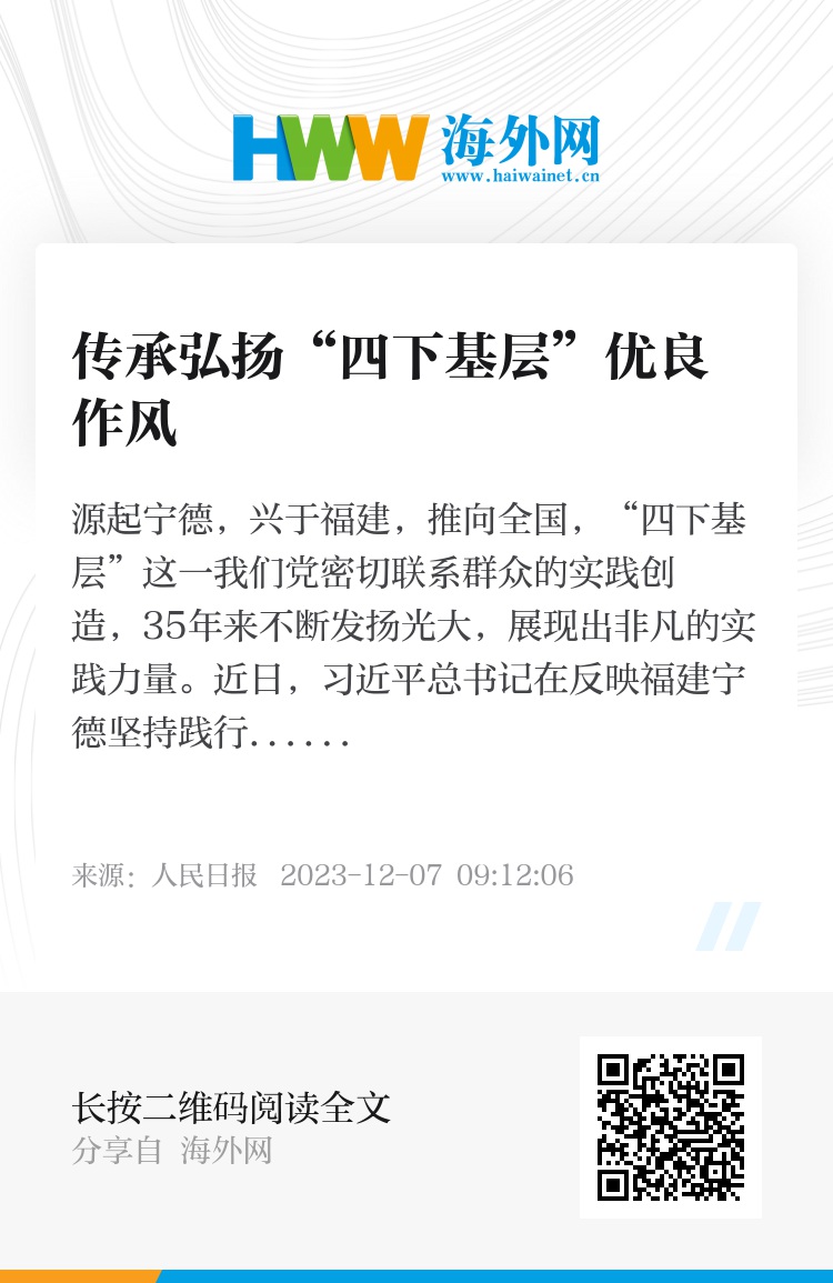 源起宁德,兴于福建,推向全国,“四下基层”这一我们党密切联系群众的实践创造,35年来不断发扬光大,展现出非凡的实践力量。近日,习近平总书记在反映福建宁德坚持践行“四下基层”促发展见实效的有关材料上作出重要批示。中央主题教育领导小组办公室要求把学习推广“四下基层”作为第二批主题教育重要抓手。