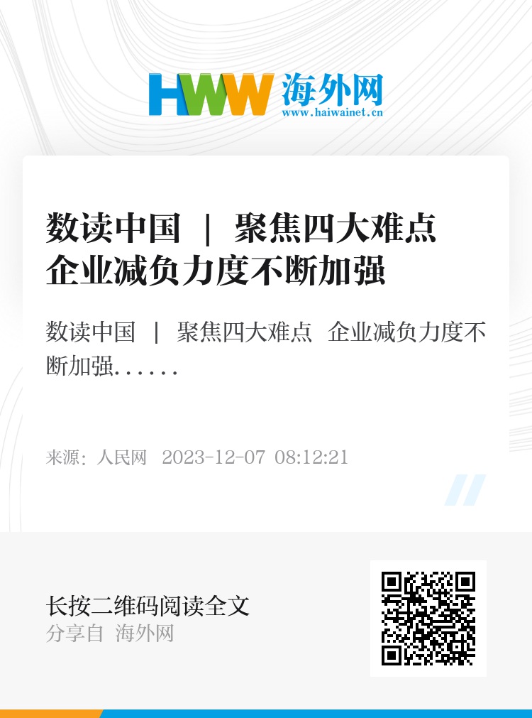 数读中国 | 聚焦四大难点 企业减负力度不断加强