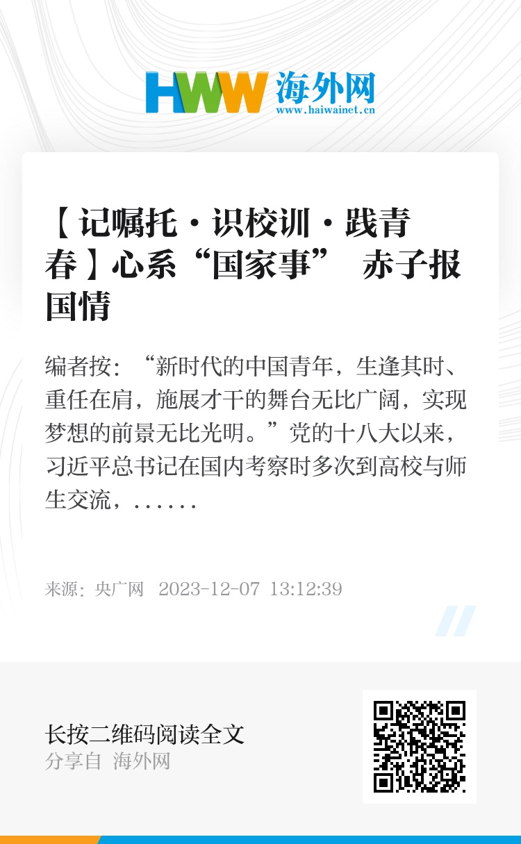 编者按:“新时代的中国青年,生逢其时、重任在肩,施展才干的舞台无比广阔,实现梦想的前景无比光明。”党的十八大以来,习近平总书记在国内考察时多次到高校与师生交流,给青年学子、教师回信,为广大师生指引人生道路、明确前进方向。为全面展示各地高校莘莘学子铭记总书记谆谆嘱托,践行校训、立大志、明大德、成大志、担大任的生动实践,央广网特别策划推出“记嘱托·识校训·践青春”系列主题报道,为您讲述新时代大学生在强国建设、民族复兴道路上努力成为堪当民族复兴重任、勇于创造世界奇迹国之栋梁的故事。