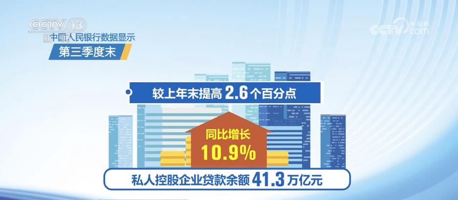 在促进外贸贡献方面,今年前10个月,以人民币计价的民营企业进出口增长6.2%,成为稳外贸的突出亮点。同时,第二产业民间投资保持较快增长。扣除房地产开发投资后,民间投资增速较快,前10个月同比增长9.1%。中国人民银行数据显示,第三季度末私人控股企业贷款余额41.3万亿元,同比增长10.9%,较上年末提高2.6个百分点;9月末普惠小微贷款余额同比增长24.1%。