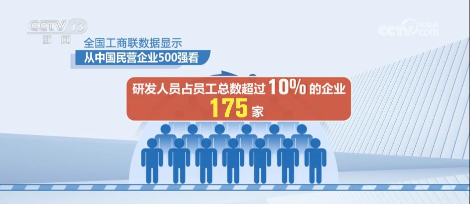 另一方面,民营企业科技创新能力进一步强化。民营企业生来就是闯市场、搞创新的,从模式创新、应用创新、集成创新开始,越来越多的民营企业开始勇闯创新无人区。据统计,民营企业贡献了65%的专利、75%以上的技术创新、80%以上的新产品开发,创新主体地位日益显著。全国工商联数据显示,从中国民营企业500强看,研发人员占员工总数超过10%的企业175家,研发经费投入强度超过10%的企业8家,414家企业的关键技术主要来源于自主开发与研制,432家企业通过自筹资金完成科技成果转化。此外,九成以上的中国民营企业500强从不同层面实施或计划实施数字化转型。