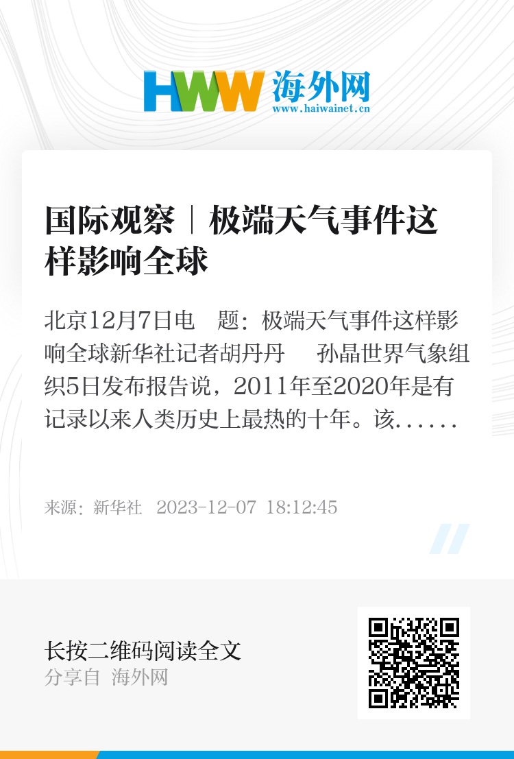 新华社北京12月7日电 题:极端天气事件这样影响全球