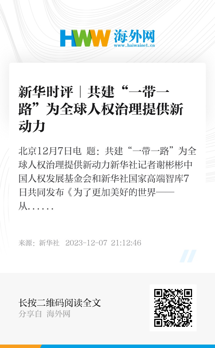 新华社北京12月7日电 题:共建“一带一路”为全球人权治理提供新动力