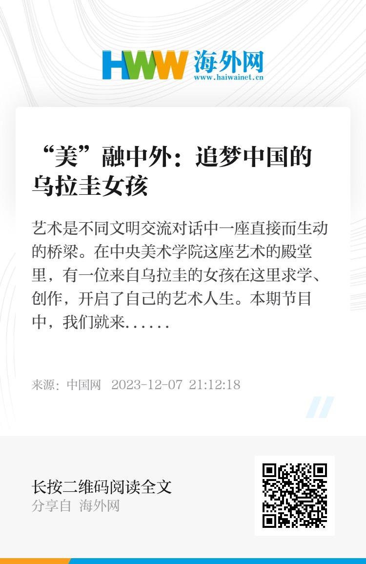 艺术是不同文明交流对话中一座直接而生动的桥梁。在中央美术学院这座艺术的殿堂里,有一位来自乌拉圭的女孩在这里求学、创作,开启了自己的艺术人生。本期节目中,我们就来一起认识一下她吧。