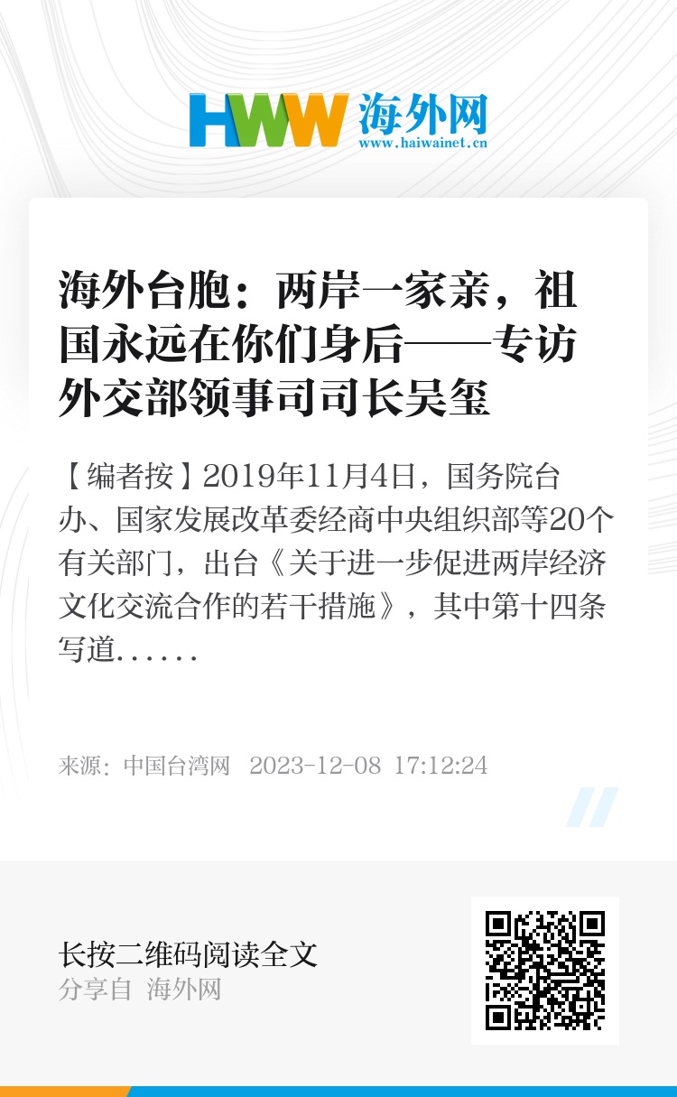 中国台湾网:外交部和中国驻外使领馆近年来出台了哪些侨务惠台政策?对海外台胞侨团是否有鼓励和支持的措施?