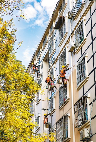 近年来,江西省抚州市南丰县积极推进惠民工程,对一批老旧小区实施改造。图为11月29日,南丰县一处老旧小区改造现场。谢 东摄(人民图片)
