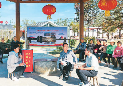 11月1日,在江苏省宿迁市泗洪县天岗湖乡姚宋村党群服务中心,乡村党员干部和群众促膝谈心,帮助群众解决急难愁盼问题。陈 玉摄(人民图片)
