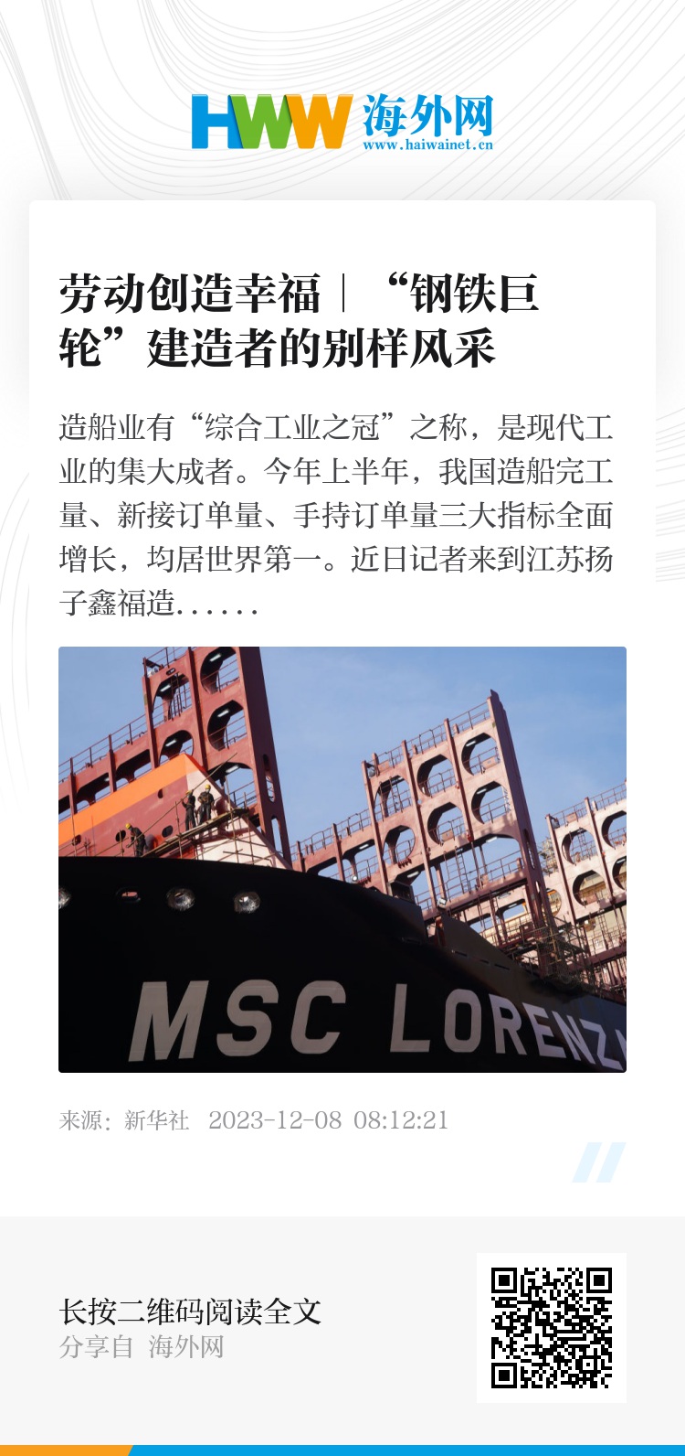 造船业有“综合工业之冠”之称,是现代工业的集大成者。今年上半年,我国造船完工量、新接订单量、手持订单量三大指标全面增长,均居世界第一。