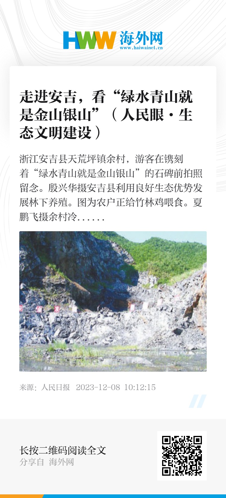 “和余村一样,过去县里还有些村子开矿。群众的钱包是鼓了,地方财政也上去了,但乡村不再美丽。”湖州市生态环境局安吉分局局长朱红星说。