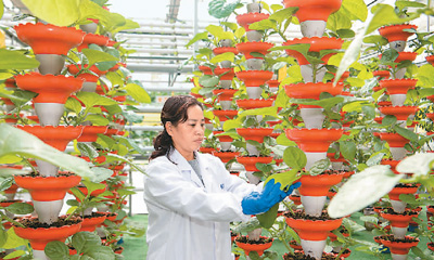 近年来,江苏省张家港市大力发展智慧农业,引进高效示范性农业项目。图为该市现代农业科技示范园生产基地的工作人员在作业中。任广真摄