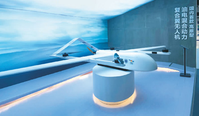绿航院自主研发的油电混合动力复合翼无人机。本报记者 康朴摄