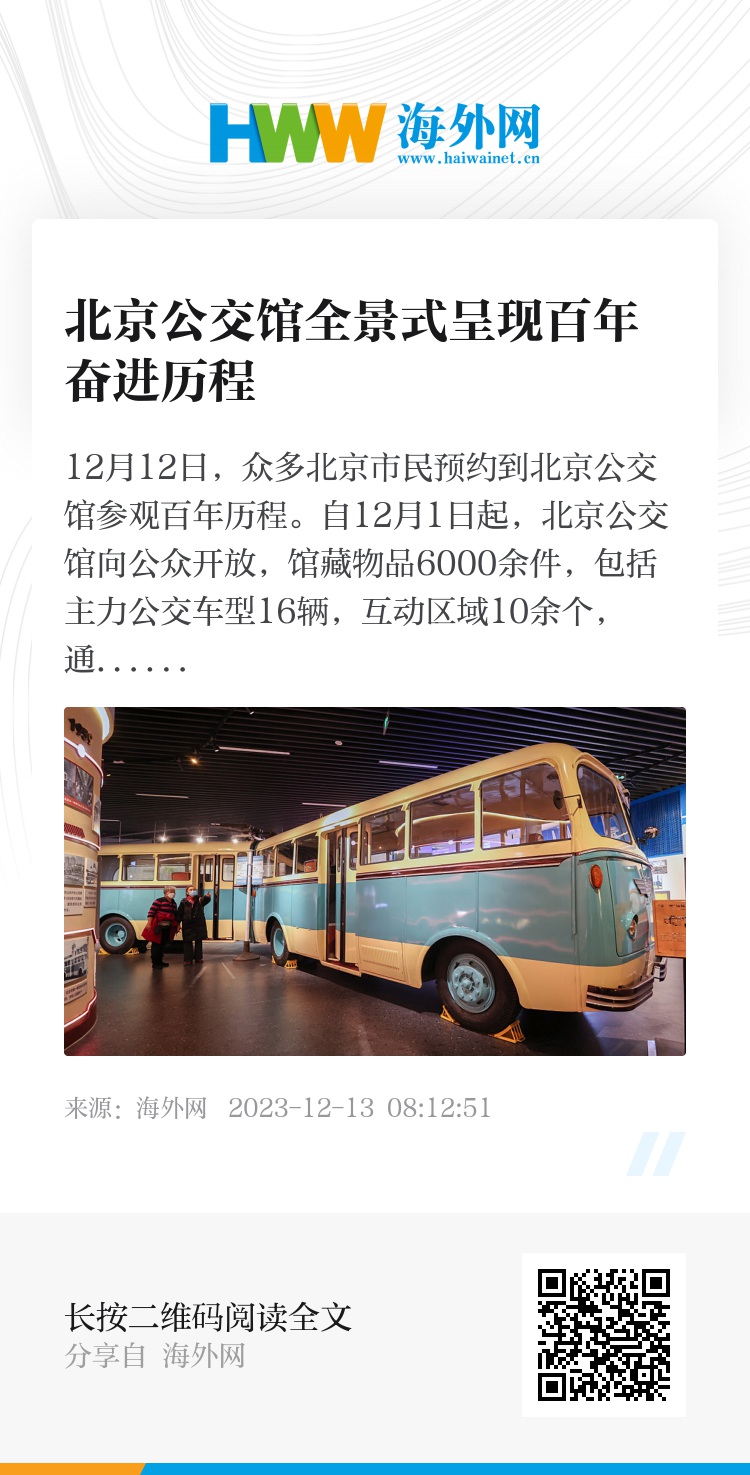 12月12日,众多北京市民预约到北京公交馆参观百年历程。自12月1日起,北京公交馆向公众开放,馆藏物品6000余件,包括主力公交车型16辆,互动区域10余个,通过“人、车、线、票、站、事”六个载体,全景式呈现北京公交的百年奋进历程。图源:视觉中国