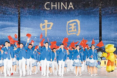 透过亚运会和大运会的独特窗口,人们看到了体育与文化的交融,领略着新时代中国的可信、可爱、可敬。杭州亚运会满城桂花飘香,赛场内外,“淡妆浓抹总相宜”的江南情致有了现代化的呈现;成都的美景、美食令各国年轻人流连忘返,国宝大熊猫更是成为运动员竞相打卡的“顶流”,千年锦官城绽放时代芳华。绿色、科技元素满满的竞赛场馆,自信热情的志愿者“小青椒”“小青荷”……中国式现代化的万千气象,跃然于从赛场到城市的每个角落。
