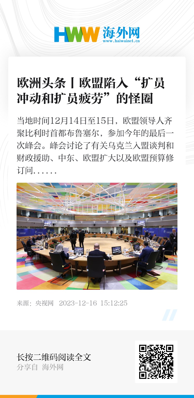 当地时间12月14日至15日,欧盟领导人齐聚比利时首都布鲁塞尔,参加今年的最后一次峰会。峰会讨论了有关乌克兰入盟谈判和财政援助、中东、欧盟扩大以及欧盟预算修订问题。当地时间14日,外界分析的启动乌克兰入盟谈判一事,取得了意想不到的快速进展。当天欧洲理事会主席米歇尔宣布,欧盟决定与乌克兰和摩尔多瓦开启入盟谈判,并授予摩尔多瓦候选国地位。