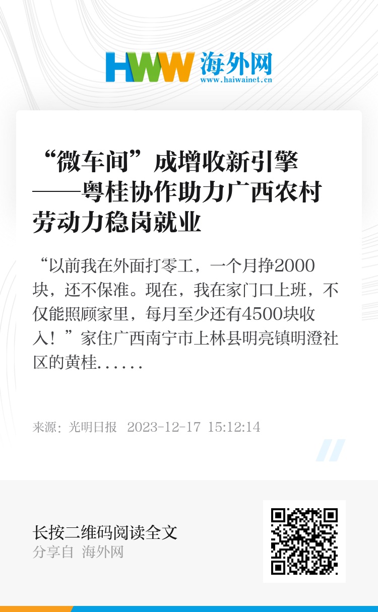 “一县一企+微车间”模式,精准对接农民群众需求,稳定就业岗位,在广西各地大受欢迎。