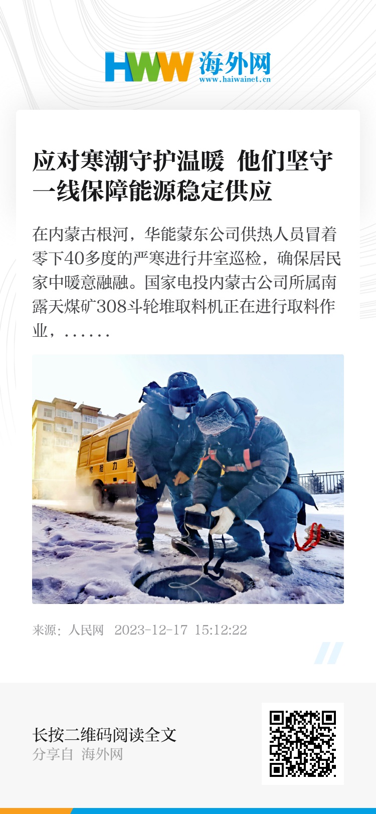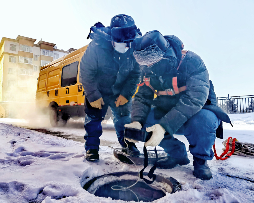 在内蒙古根河,华能蒙东公司供热人员冒着零下40多度的严寒进行井室巡检,确保居民家中暖意融融。