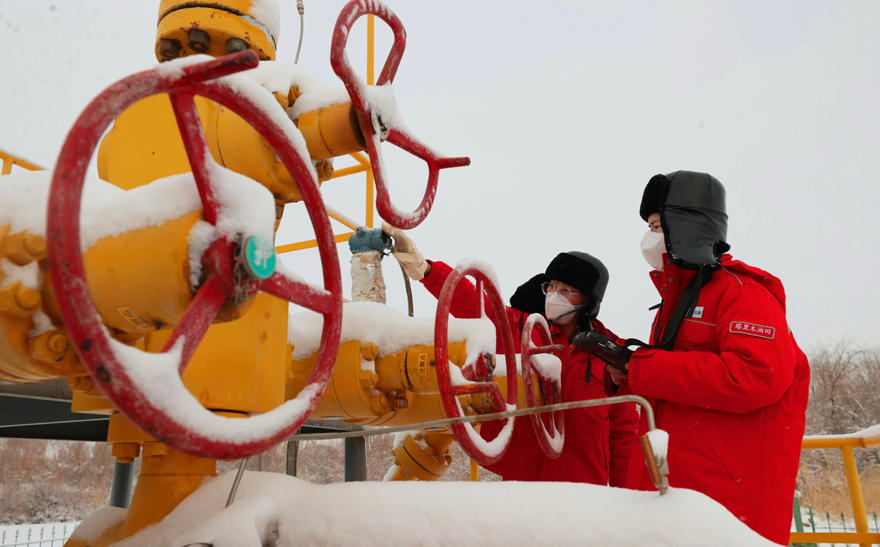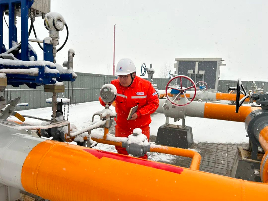 国家管网集团陕京管道榆林作业区员工加密巡检,确保天然气管网安全平稳运行。受访者供图
