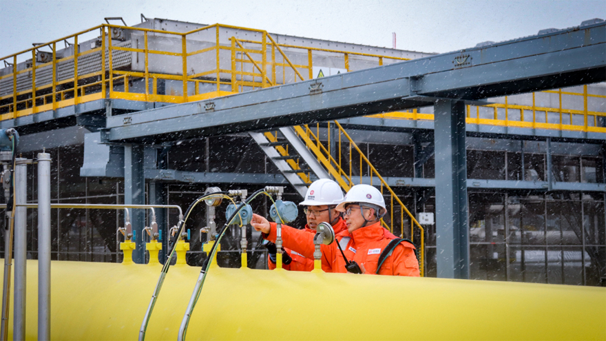 中联公司工作人员检查神安煤层气管道出站压力参数,夯实能源保供“底气”。受访者供图