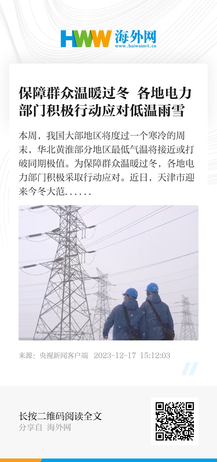 本周,我国大部地区将度过一个寒冷的周末,华北黄淮部分地区最低气温将接近或打破同期极值。为保障群众温暖过冬,各地电力部门积极采取行动应对。