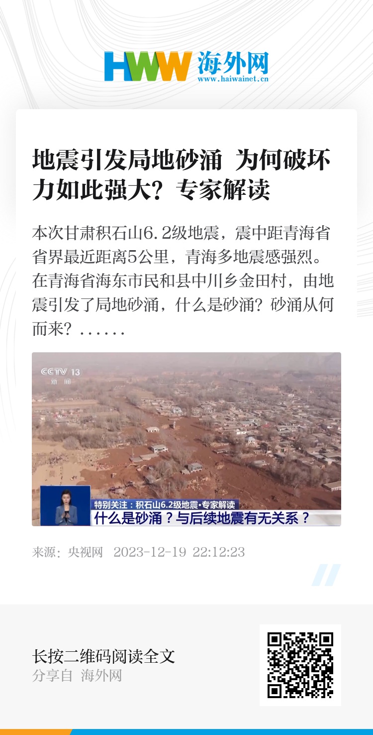 在青海省海东市民和县中川乡金田村,由地震引发了局地砂涌,什么是砂涌?砂涌从何而来?为何破坏力如此强大?一起来听中国地震台网中心高级工程师韩颜颜的介绍。