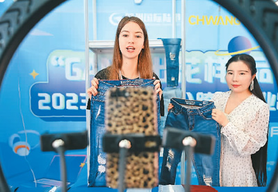 在江西省赣州市南康区赣州国际陆港,跨境电商卖家进行直播带货。朱海鹏摄(人民视觉)
