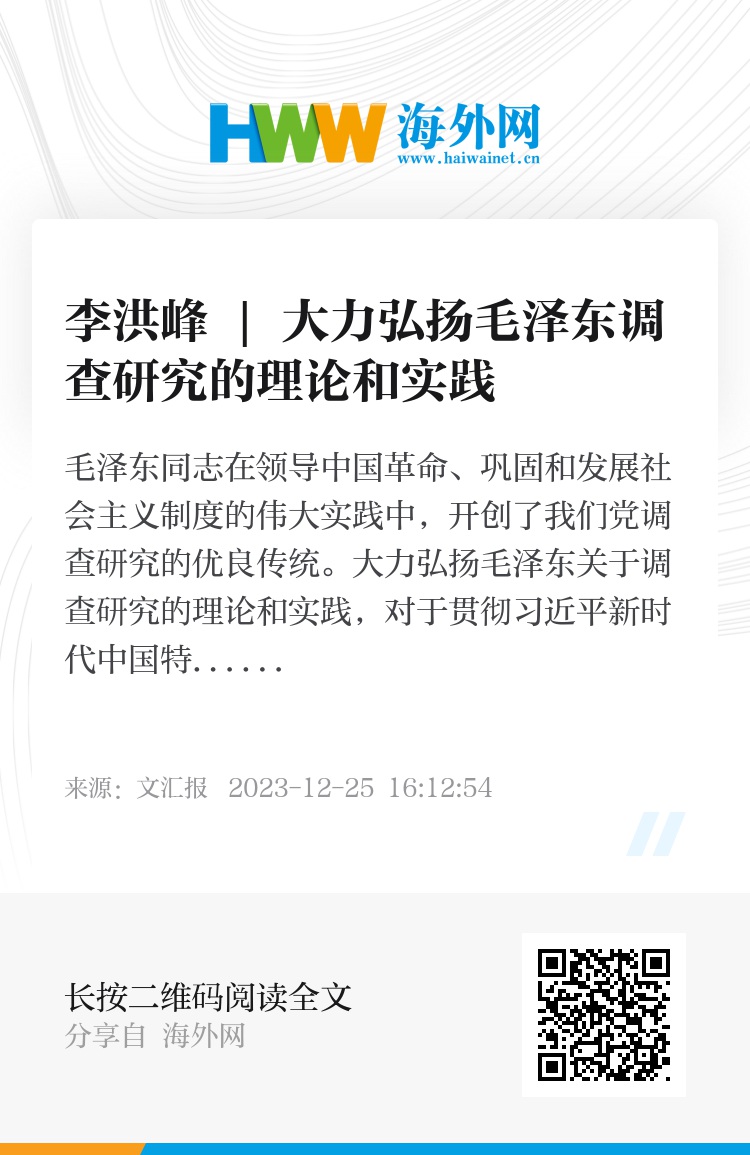 毛泽东同志在领导中国革命、巩固和发展社会主义制度的伟大实践中,开创了我们党调查研究的优良传统。大力弘扬毛泽东关于调查研究的理论和实践,对于贯彻习近平新时代中国特色社会主义思想,全面建设社会主义现代化国家、全面推进中华民族伟大复兴,具有重大现实意义。