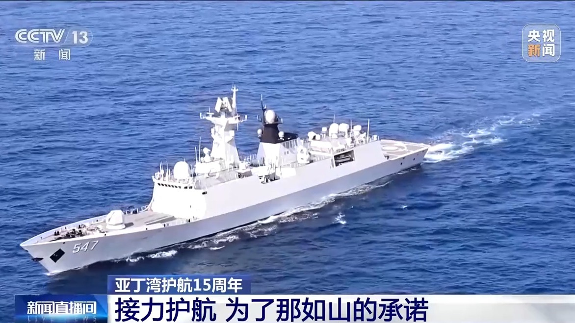 海军临沂舰 闫鹏:15年间,中国海军先后为7200余艘中外船舶实施护航,其中外国船舶占比超过50%,甚至不少外籍商船是从国际推荐走廊驶来,申请加入中国海军护航队伍。