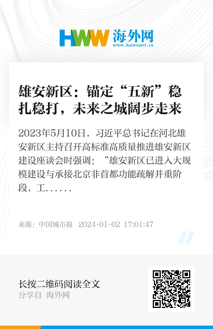 6年多来,雄安新区把改革开放作为高质量发展的必由之路,锚定“开放发展先行区”的发展定位,破除制约创新的体制机制束缚,走出了一条敢为人先的创新发展之路。