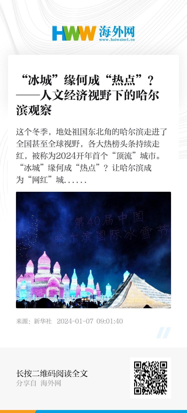 以高寒为气候特质的哈尔滨,成为当下社交媒体上最热的文化符号。这座地处北疆的东北城市,正在把制约发展的“冷”转化为吸引游客的“热”,在聚光灯下焕发无限生机。