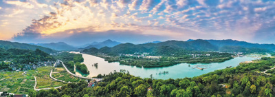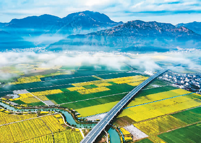 飞云江的中上游,有一个地方叫做曹村镇。这里有山有河有田园有村落,南宋至明代,共走出80多名进士,素有“中华进士第一村”“中国耕读第一镇”之美誉。每年金秋时节,许多游客组团而来,或登上观景台远望,欣赏风吹稻浪满目金黄、远山如黛连绵起伏的田园景色;或骑着单车沿绿道前行,穿梭于田地花园之间,呼吸大自然的新鲜空气;或登上摩托艇、坐上滑翔伞,在速度与激情中感受如画般的美丽风光。