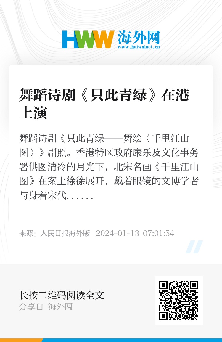 据悉,舞剧《只此青绿》于2021年在国家大剧院首演,并荣获第十七届文华大奖。当中的选段曾于2022年庆祝香港回归祖国25周年文艺晚会中以视频形式参演,广受香港市民好评。