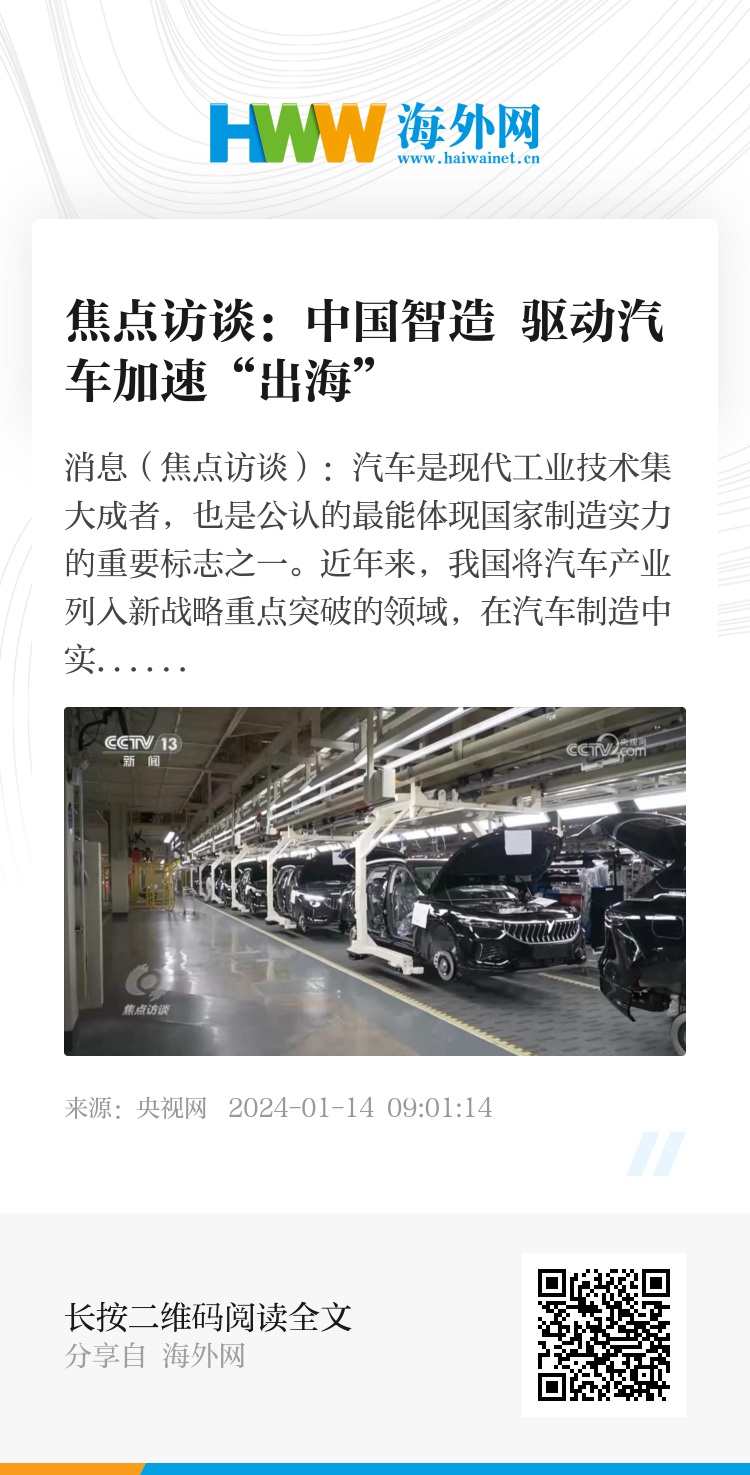从无到有,从有到大,从大到强,今天,中国“智造”汽车正在加速驶向全球,特别是对汽车工业发达国家的出口不断扩大,开启了全球竞争的新阶段,使中国汽车跻身全球汽车行业。汽车产业是一个技术密集型产业,技术创新是保持行业乃至国际竞争力的关键。中国汽车加速出海的背后,离不开国家对汽车产业绿色低碳转型的推动,离不开企业持续不断的技术创新和产业完整产业链供应链的构建。展望未来,中国的汽车产业仍然具有很强的综合竞争优势,也需要在创新技术和产品的同时,进一步创新商业模式,更好地协同出海。