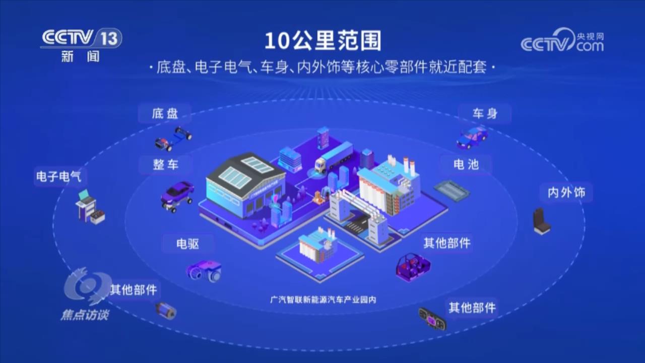 来到位于珠三角的广汽埃安新能源汽车工厂,记者了解到,以这家工厂为中心,已经形成了最快3小时的汽车零部件产业链供应生态圈。