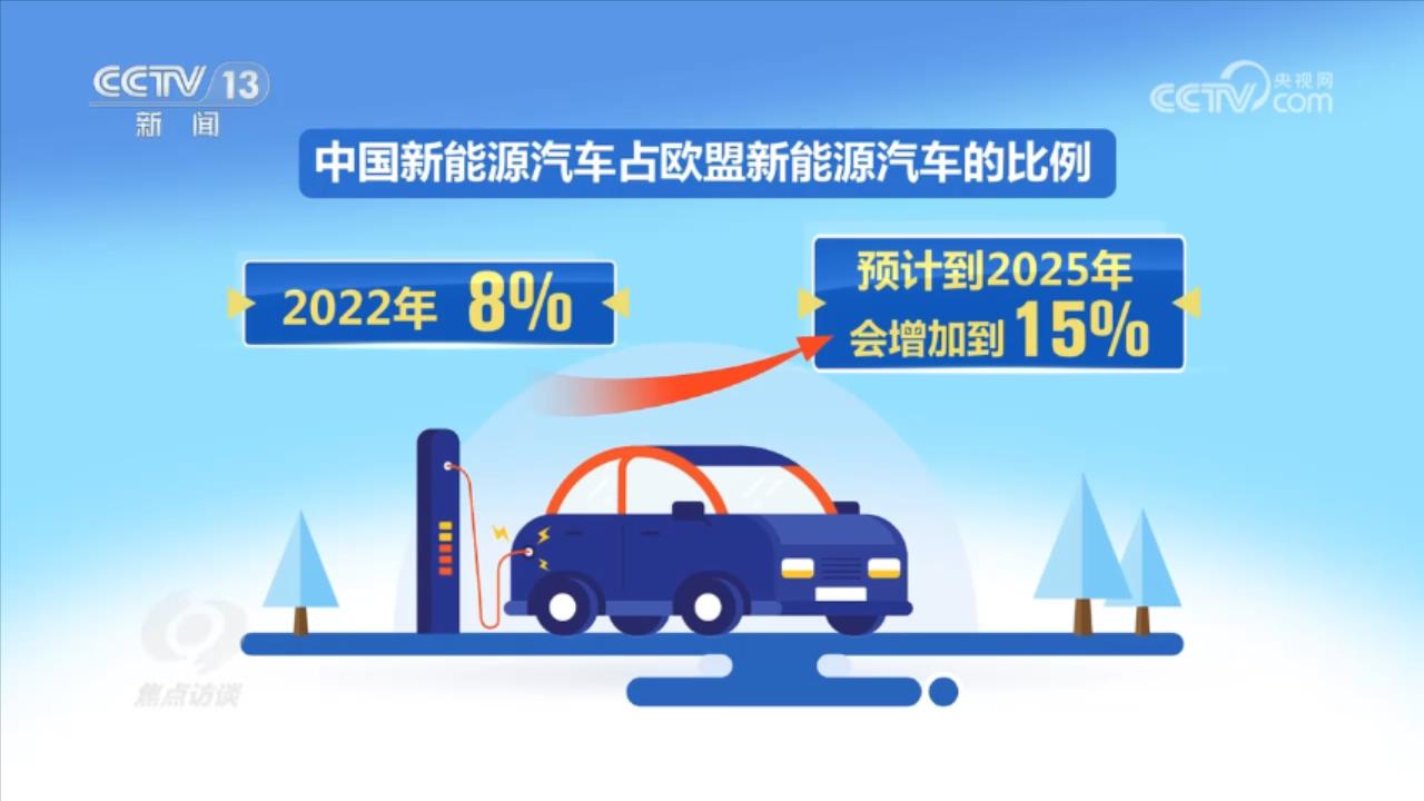 中国新能源汽车出口覆盖的国家不断增多,欧洲和北美等发达地区开始成为重要市场。据统计,2023年中国新能源汽车出口排名前三位的国家是比利时、泰国和英国。有数据显示,2022年,中国新能源汽车占欧盟新能源汽车的比例为8%,预计到2025年,中国品牌将占的比例会增加到15%。中国新能源汽车进入汽车工业发达国家,说明中国的汽车产品正在形成全球竞争力。