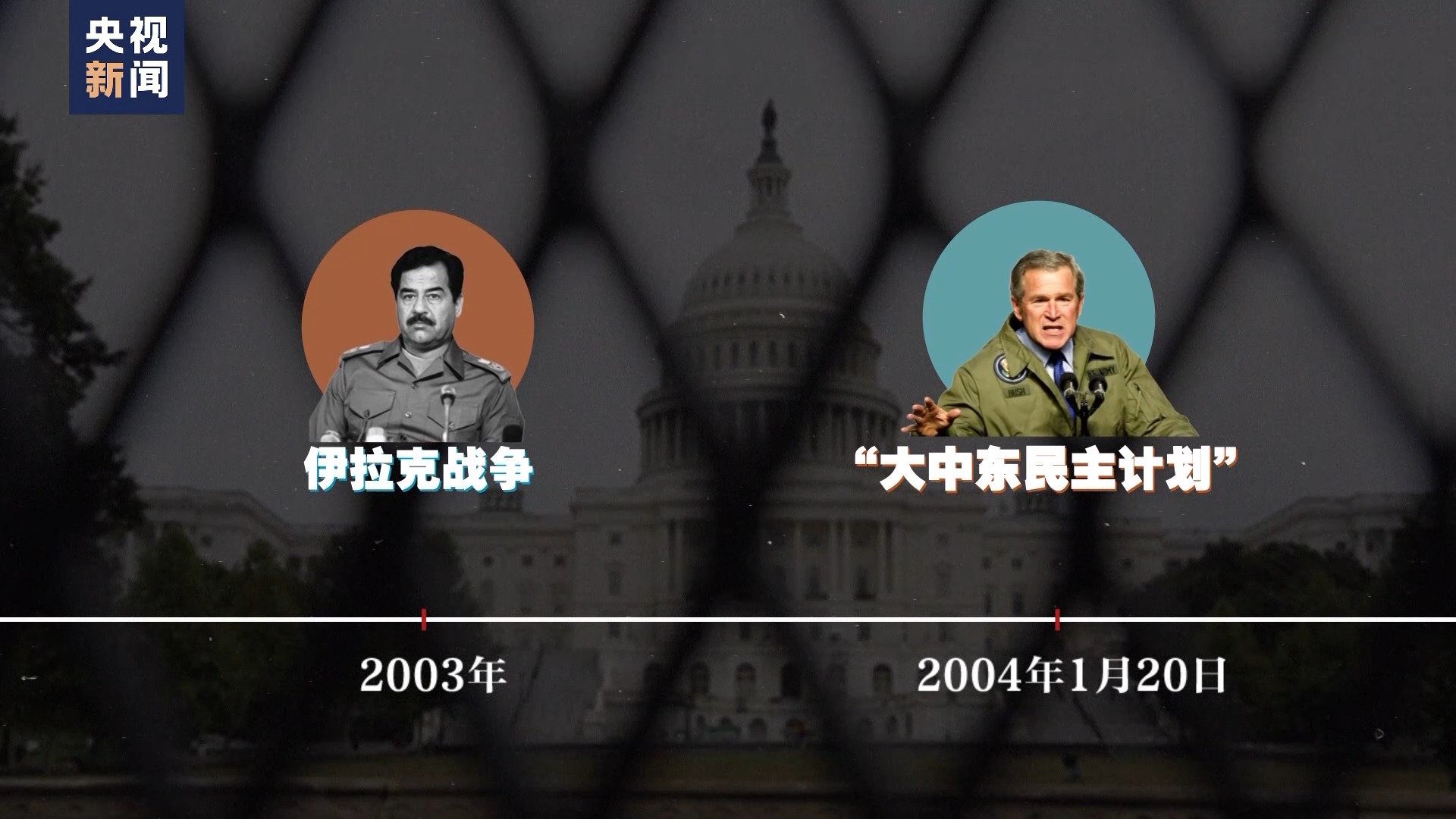 不少媒体注意到,20年前的2004年1月,美国总统小布什正式公布“大中东民主计划”。在推翻萨达姆政权的春风得意中,美国要对自己眼中的“大中东”进行“全方位改造”。
