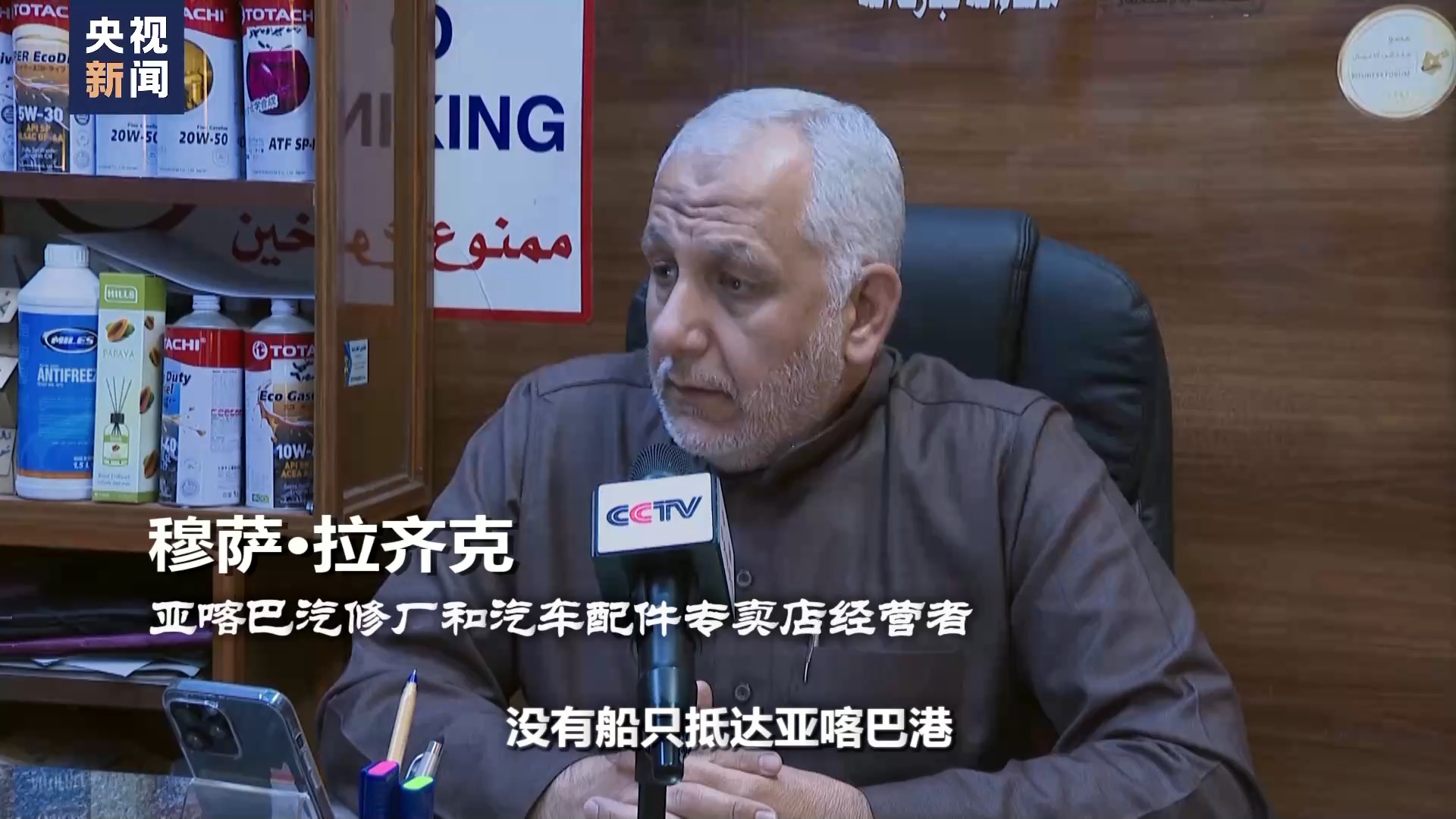 亚喀巴汽修厂和汽车配件专卖店经营者 穆萨·拉齐克:没有船只抵达亚喀巴港,商品会出现短缺。约旦当地市场的货源大多数都依赖于中国以及其他东亚国家,现在要么运到(阿联酋迪拜的)杰贝阿里港再陆路转运,要么像那样选择绕行非洲好望角,运输时间肯定会大大加长。