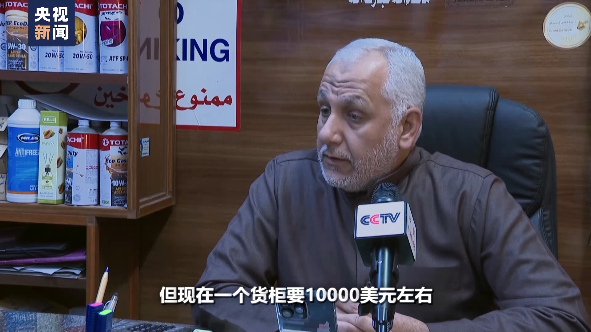 亚喀巴汽修厂和汽车配件专卖店经营者 穆萨·拉齐克:之前一个集装箱货柜从中国运到这里的费用大概在1800美元到2000美元,但现在一个货柜要10000美元左右。