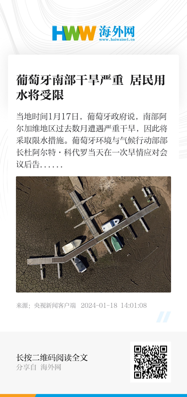 当地时间1月17日,葡萄牙政府说,南部阿尔加维地区过去数月遭遇严重干旱,因此将采取限水措施。
