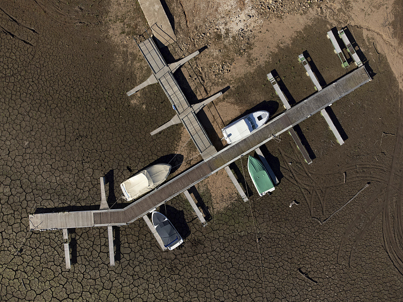 △2022年2月17日,葡萄牙遭遇干旱,一些游船停泊在干涸的泽泽雷河上。