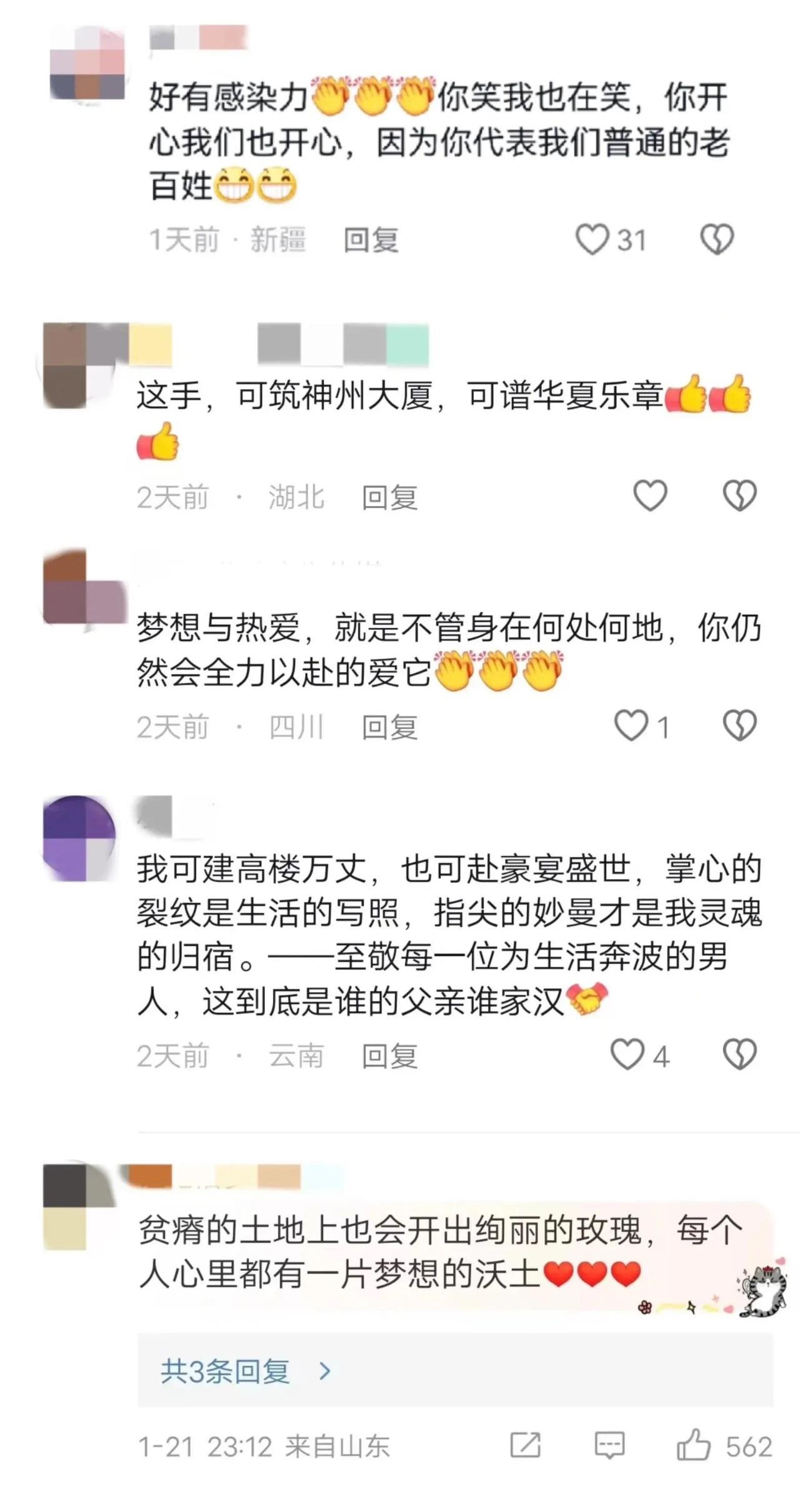 不少同是工人的网友留言,字里行间都是兴奋与喜悦,“老易是我们建筑工人的代表,春晚邀请他,我们替他骄傲,也为自己自豪!”